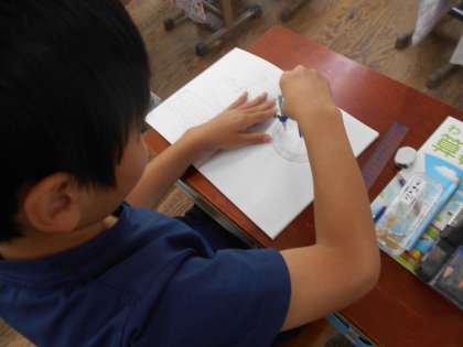 コンパスを使って円をかく練習をしました。