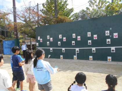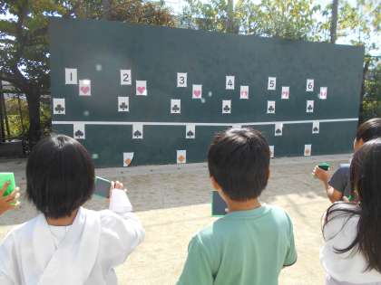 太陽の光を鏡に反射させて的当てゲームをしました。
