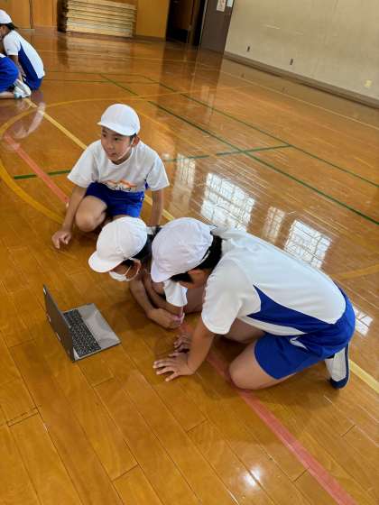 タブレットで撮影したものを見合って,アドバイスをしあう姿も見られました。