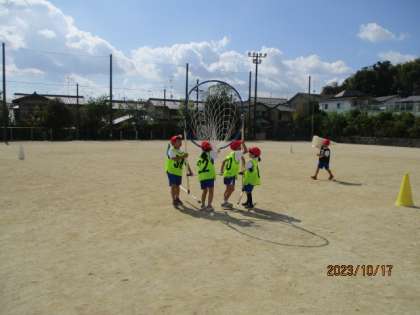 みんなで協力して、上手にコートを用意することができました。