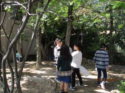 との声を受けて、今日は、学校のビオトープへ秋の宝物を見つけに行きました。