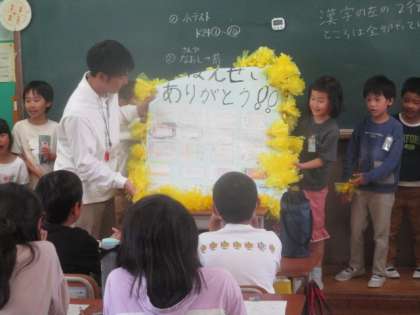 1年生が運動会の活動のことで、6年生にお手紙をくれました。かわいいかわいい1年生の訪問に、子ども大喜びでした。