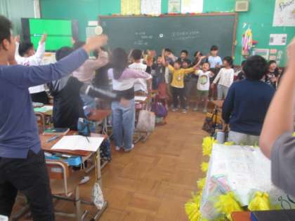 6年生の真似をして、応援団の練習をしていると1年生の担任の先生から聞いていた6年生。