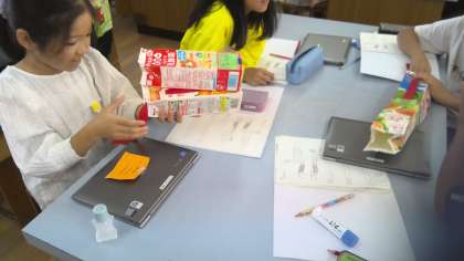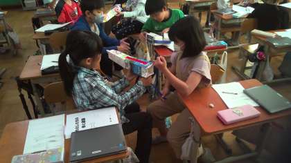 前回,うでの筋肉がどこにあって,どんな動きをするのかを学びました。今回は,筋肉が縮んだりゆるんだりすることでうでが曲がることを確かめるために牛乳パックを使って実験をしました。最初は,「骨が動いて筋肉が縮む」と思っていた児童も多かったので,実験を通して「筋肉が縮んでうでの骨を動かしている」ということを確かめることが出来ました。
