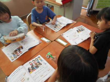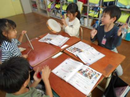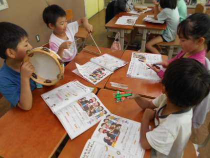 タンブリンやトライアングルなどの楽器の使い方を学習し、