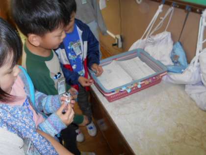 自分で作ったオリジナル「すきまちゃん」を、すきまに入れて遊びました。