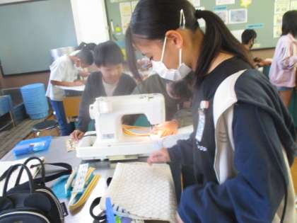 今日は1組はマチを作るところを、2組は出し入れ口を、3組はとってを付けるところをやりました。