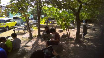 秋になり,生物はどのように変化しているのか,ビオトープへ観察に行きました。春から継続して観察している木にも,変化が見られたようで,たくさん写真を撮ったりさわってみたりして観察しました。葉の色が変わっていたり,芽がでていたり季節による変化を見つけることが出来ました。