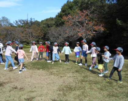 広場でのびのびと遊んでいる子どもたち。