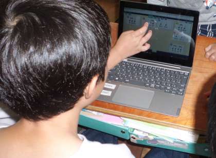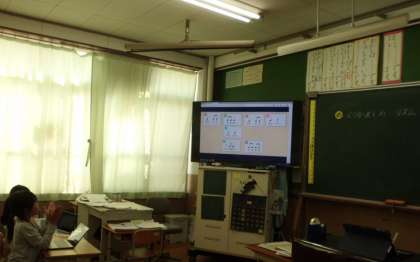 みんなのリズム譜をテレビ画面に映し出し、演奏してみました。