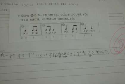 リズムカードを使った音楽づくりの活動をゲーム感覚で楽しみました。