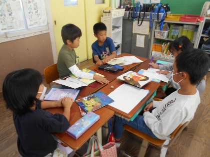 1年生に読み聞かせをする本を決める話し合いのめあてを班ごとに決めました。