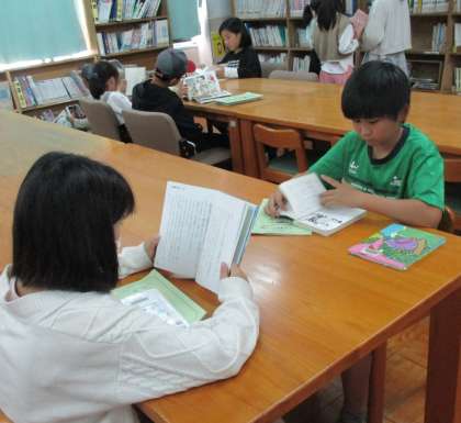 運動会練習でなかなか図書館に行けなかった4年生。久しぶりの図書館にほっこりです。