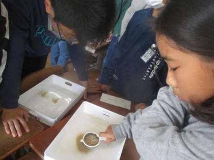 ふるいにかけながら、土の大きさにびっくりしながら学習を進めていました。