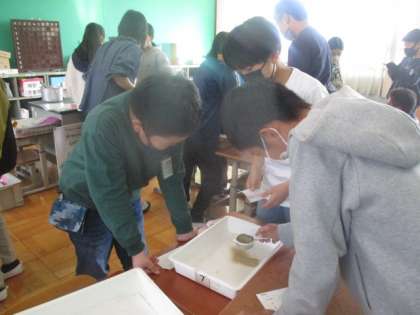 理科が土地の作り方に入りました。今日は、実際に土の種類を分けて形や様子を観察しました。