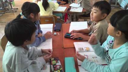 国語科では、互いの話に関心をもち、相手の発言を受けて話をつなぐことができるように学習を進めています。