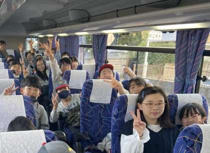 バスに乗りこみ出発です。お見送りありがとうございます。