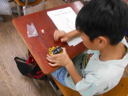 「2本とも同じところにつけるとうまく明かりがつかないな。」