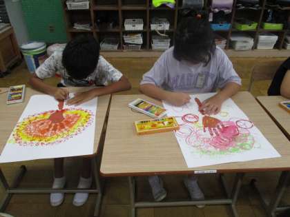 おもいおもいに、動物などを描きました。