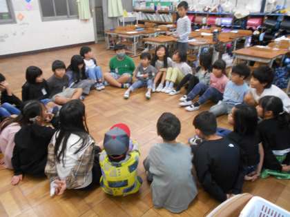 昼休みになると、みんなで輪になってハンカチ落としが始まりました。雨の日も、楽しく昼休みを過ごすことができました。