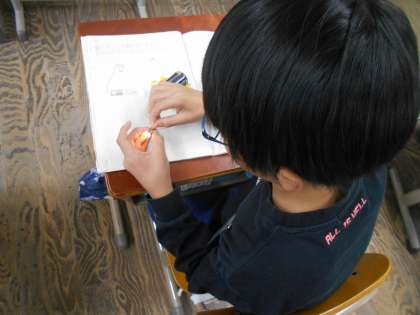 ソケットを使わずに豆電球に明かりをつけることはできるのか予想をしてから実験しました。
