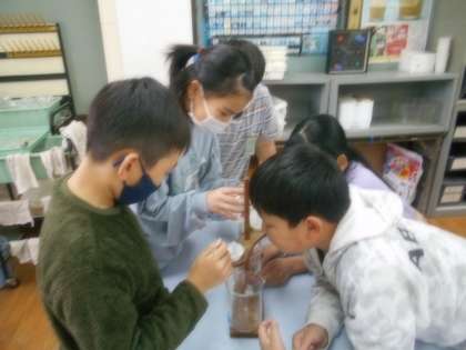 食塩とみょうばんをとかした水溶液をろ過する実験をしました。