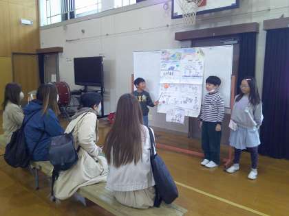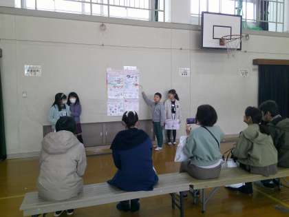 松陽の地域にあるお店について調べたことをポスターや紙芝居で伝えました。お店の方の工夫や、お店の素敵なところをたくさん伝えることができました。発表するのは緊張したようですが、たくさんの保護者の方に聞いてもらうことができてとても嬉しかったみたいで、笑顔で発表できました。たくさん参観していただきありがとうございました!!