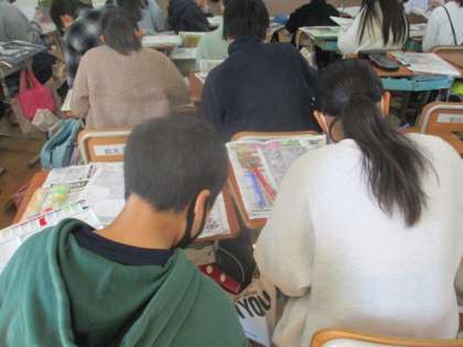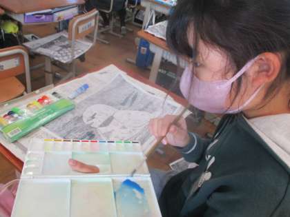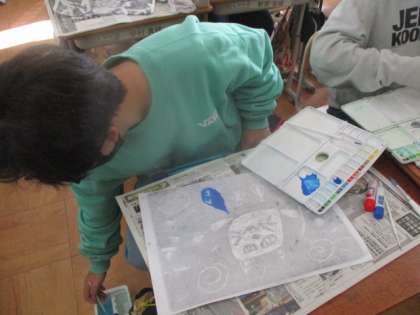 12月14日(木) 6年生 図画工作科「版画の彩色をしよう。