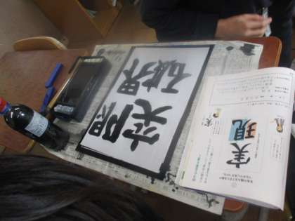 書写の時間に、好きな文字や言葉を書いてみました。1、2組は万葉仮名を学習した後だったので、小筆を使って自分が今まで作ってきた俳句を書いてみました。