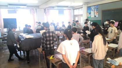 さらに、卒業式で歌う「次の空へ」を歌う中学3年生の映像も見せてもらいました。