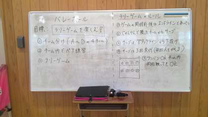 中学校の先生からいつものバレーボールとは少し違うルールを教えてもらい、さっそくプレー。