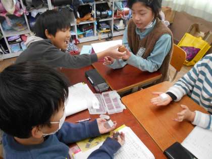 同じ体積でも、物の種類が違うと重さは違うかを予想して調べました。