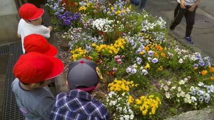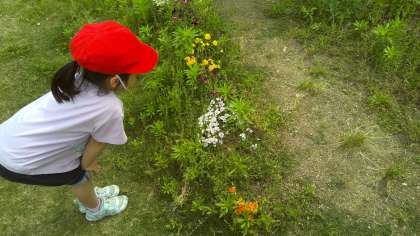 「あ!ここにも咲いてる!」「きれいだな〜」とキラキラした笑顔で花を観察することができました。