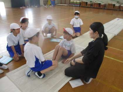 今日は1年に1回の新体力テストでした。各クラスごとに回る順番が決まっています。子ども達は、みんなで協力して声をかけあい、スムーズに動くことができました。
