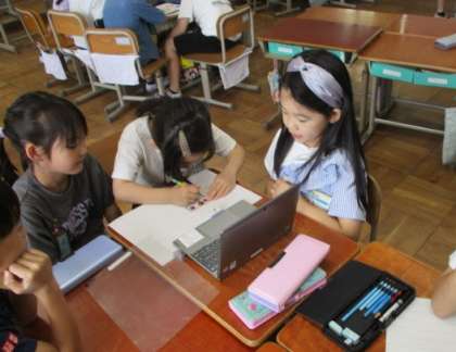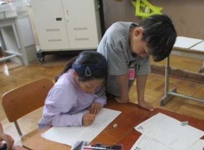 1年生との学校探検に向けて、それぞれのグループごとに担当の教室のイラストをかいたり、その教室を紹介するための文章を考えたりして準備しています。1年生にとって、わかりやすいものになるように工夫しながら頑張っています。