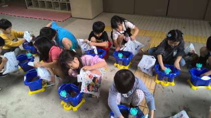 5月27日(月) 1年生 生活科「アサガオの種植え」