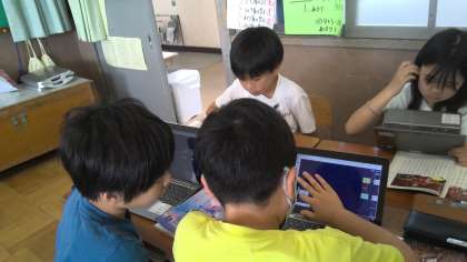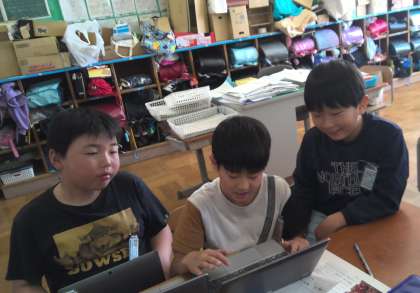 国語の学習の様子です。グループで、アップとルーズの良さなどを対比しながら学習を進めました。