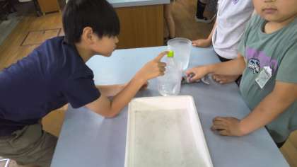 空気の体積の変化については学習しているのですぐにやり方を理解した子どもたち。