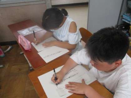 硬筆のコンクールに出展する硬筆の作品を清書しました。ゆっくり丁寧にお手本をじっくり見ながら集中する姿はかっこいいですね。