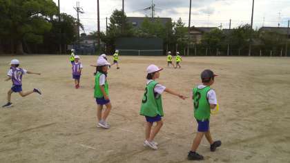 雨で延期になっていた分のリレーあそびが、やっと再開できました!折り返しリレーにチャレンジしています。