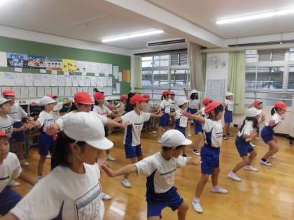 運動会に向けて、各学級でエイサーの練習をしています。