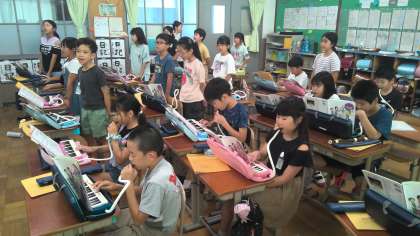 音楽では、「いいこと ありそう」という歌の学習をしています。音の高さやリズムに気を付けながら、声の出し方や歌い方を工夫して歌っています。鍵盤ハーモニカのパートも上手に弾けました。鍵盤ハーモニカの音に負けないよう元気に楽しんで歌うことができています。
