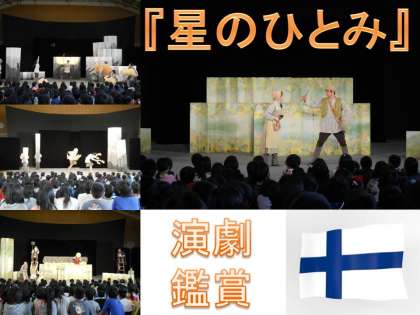 7日(月),演劇鑑賞がありました。劇団・風の子による『星のひとみ』という舞台です。フィンランドのアンデルセンといわれた,トペリウスの童話集からのお話で,躍動感あふれる作品『サンポ−・ラッペリル』と,ゆったりと落ち着いたユ−モアたっぷりの作品『明るいお月様』の2本立てでした。