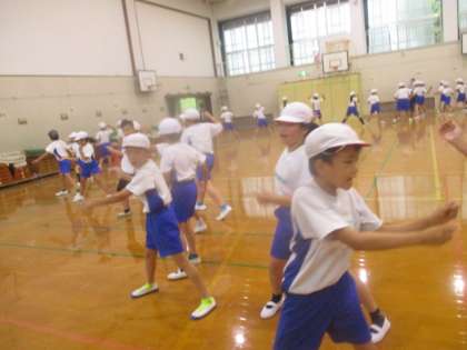 雨の中でも元気に体育館で運動会練習を頑張りました。