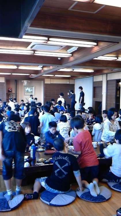 6時30分に起床し,気持ち良い快晴の中,子どもたちは朝ごはんを食べています。今日も元気にすごしましょう。