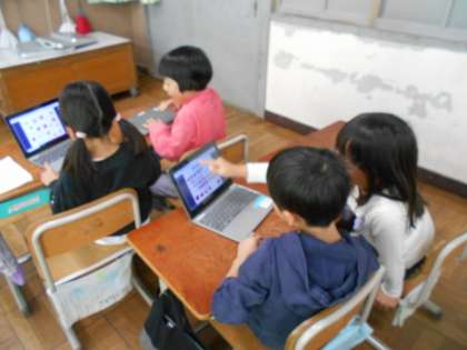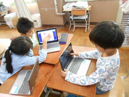 外国語の学習で自分で作ったクイズを友だちと出し合っていました。