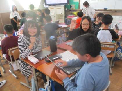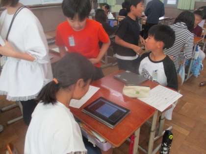 ロイロノートを使って自分の好きなものを集めていくのですが、みんな積極的に会話をしていました。