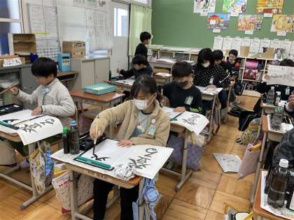 「『登』の豆の部分が小さくなっちゃった」「『登』と『る』の大きさのバランスが難しいなあ」など、二文字ですが、バランスよく書くことに苦戦していました。