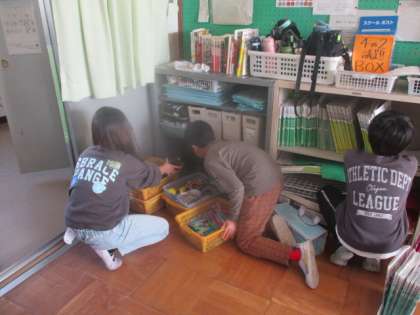 窓枠や傘立ての下など、こまごましたところを自分たちで声をかけて掃除をする姿が見られました。