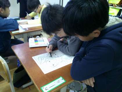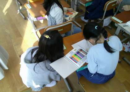 4月は朝登校してきてランドセルを片づけると「なかよしたいむ」が始まります。そこには、毎日6年生のお兄さん、お姉さんたちが来てくれます。そして、一緒に絵を描いてくれたり、本を読んでくれたりしてくれます。最初は、お互いに緊張している様子もありましたが、今では、すっかり、なかよしです!!